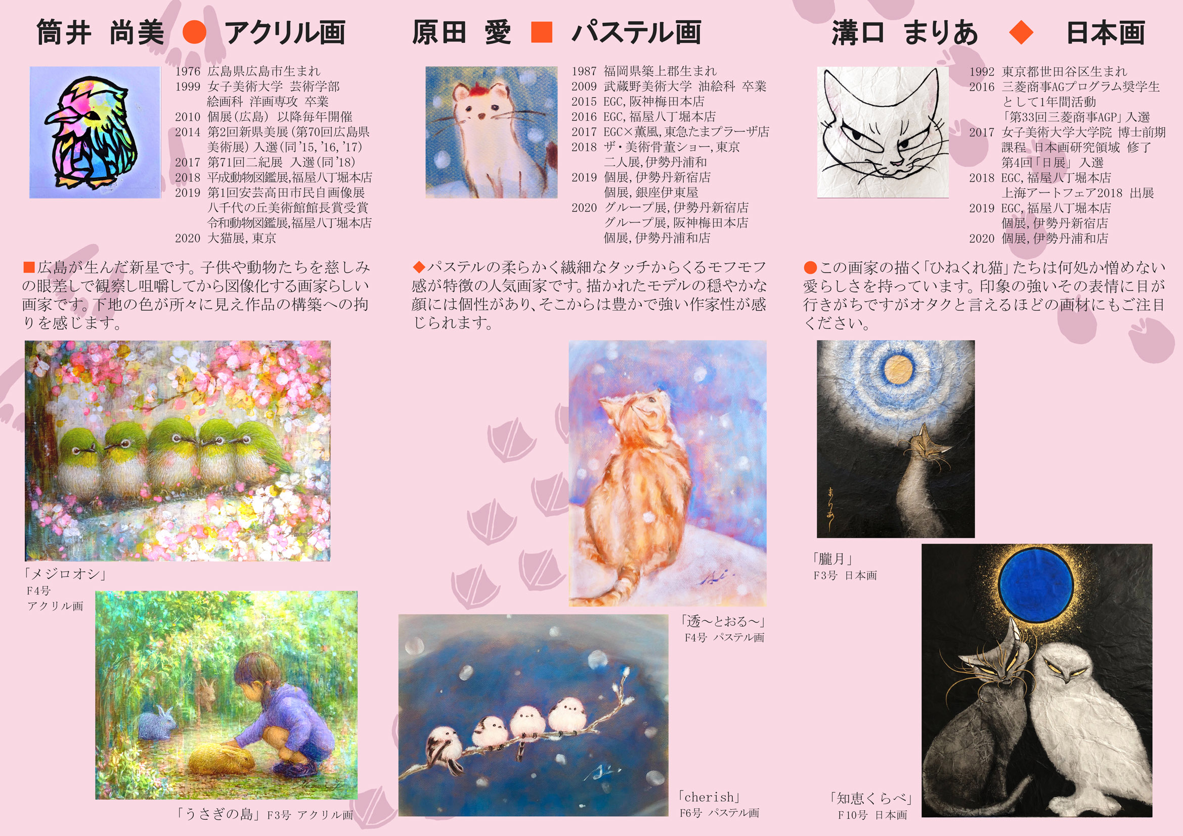 *kaden在廊はナイ予定ですが、珍しく新作が並びます。会期中および会期終了後も、月末までインターネット展覧会として作品をお楽しみいただけますので、ぜひぜひご高覧くださいー