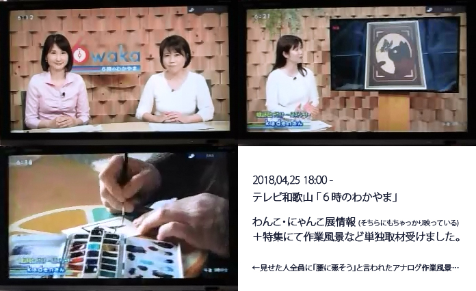 ・ テレビ和歌山「6時のわかやま」にて展示情報+特集:単独取材 (制作風景込み)