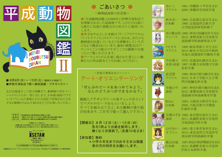 *伊勢丹浦和店での展示終了後、何人・何作か入れ替わりつつ、10月ごろ伊勢丹府中店、